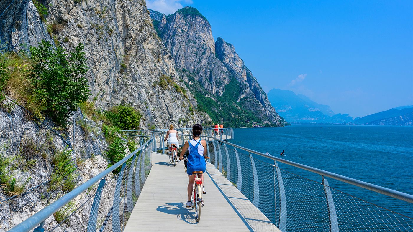 Un esempio? La pista ciclabile del Garda, inaugurata nel luglio 2018, è già famosa come la "ciclovia dei sogni", offrendo panorami spettacolari lungo il lago. Attualmente lunga 2 km, la pista si estenderà fino a Riva del Garda per un totale di 12 km. Sempre partendo dal paese di Limone, con oltre 40 km di bellezza paesaggistica, attraverso sterrati e antiche gallerie, troviamo l’itinerario che porta alla Forra e sale verso Tremosine e Tremalzo. Un percorso che offre viste mozzafiato sul Monte Baldo e il Lago di Garda, ricco di rifugi e agriturismi.